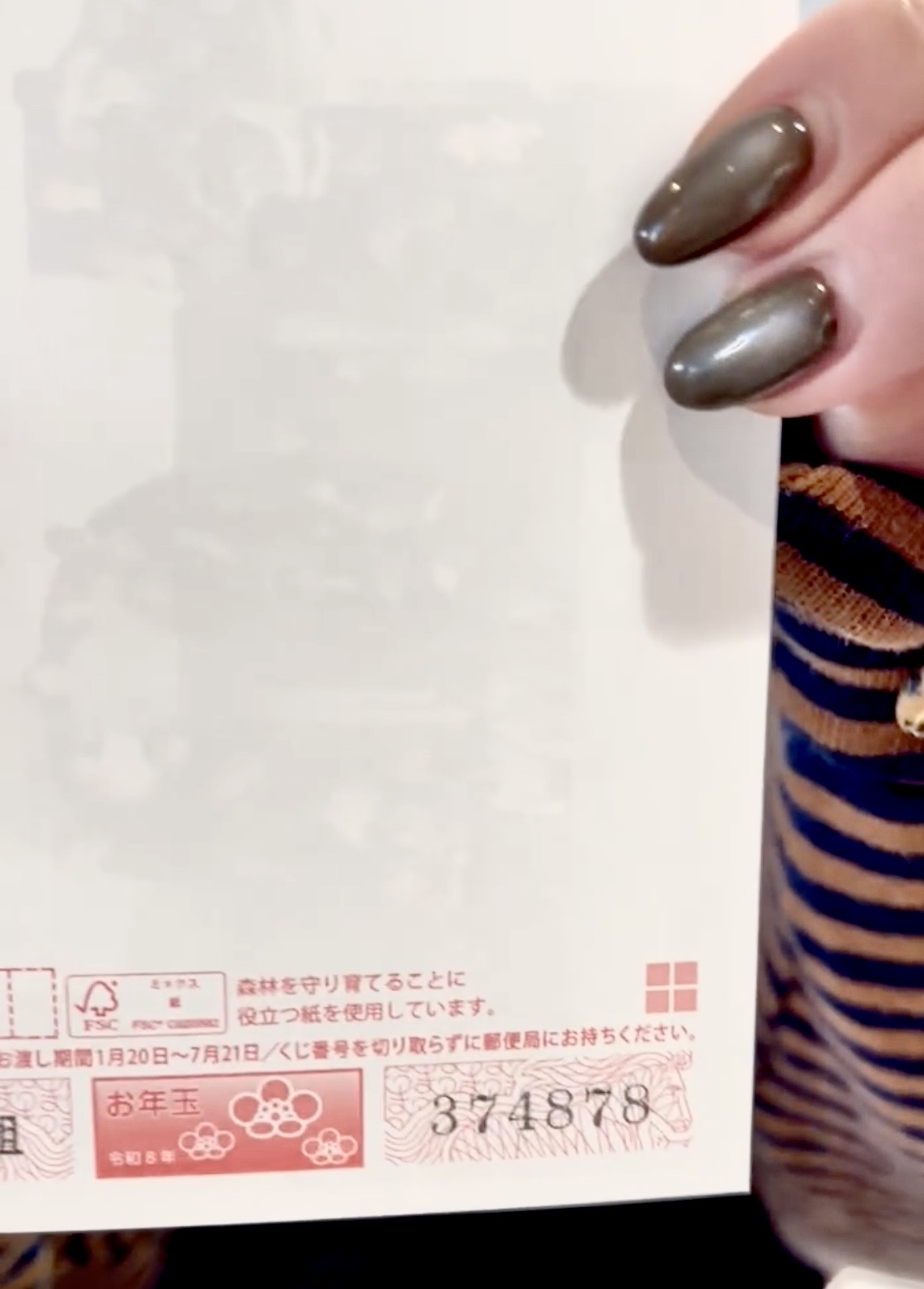 ⚪︎ご利用の際はそのまま年賀ハガキをお持ち頂くか、 当選した番号をケータイなどて撮ってお持ちください。